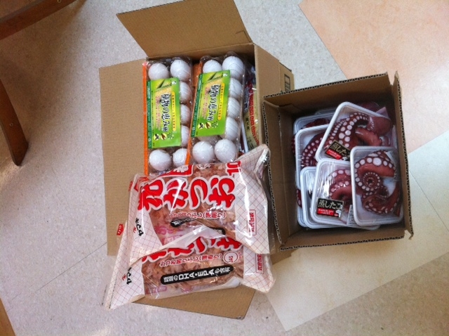 たこ焼きを神社から持っていって、みんなの昼ごはんのおかずのひとつに。