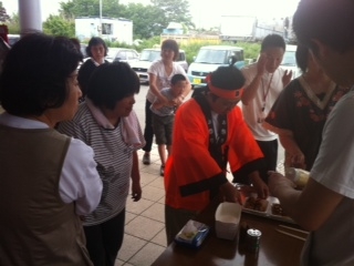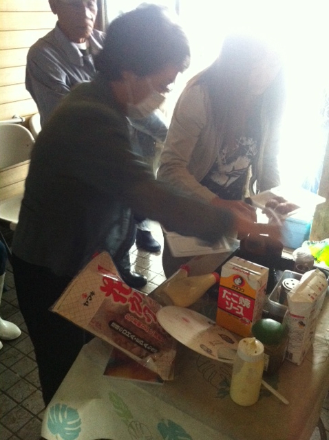 朝ごはんを食べ、熱いボランティアが集う財団本部のある南境の集会所に用事があり行ったところ、渡波の明神社でのたこ焼き炊き出しをお願いされてたのでさっそく炊き出し決行!