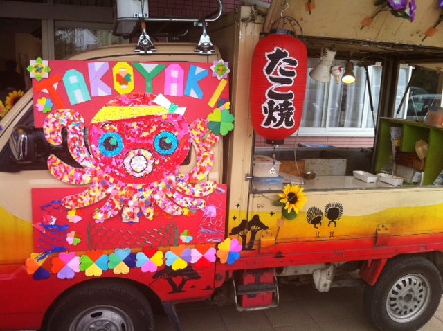 明神社と憩いの場とたこ焼きクルマ。