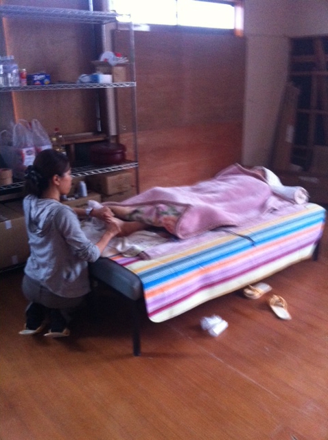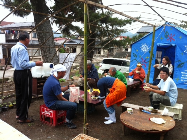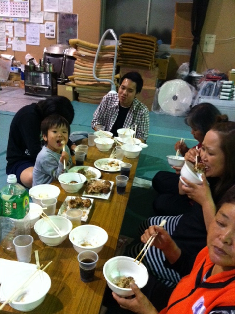 今日は昼から向陽町の仮設住宅でたこ焼き炊き出しの予定だったが朝の8時くらいに雨が降ってたんで手伝ってくれる予定の方と相談をし、残念ながら中止。しかし朝ご飯食べにおいでと誘っていただいたので食べに行った。